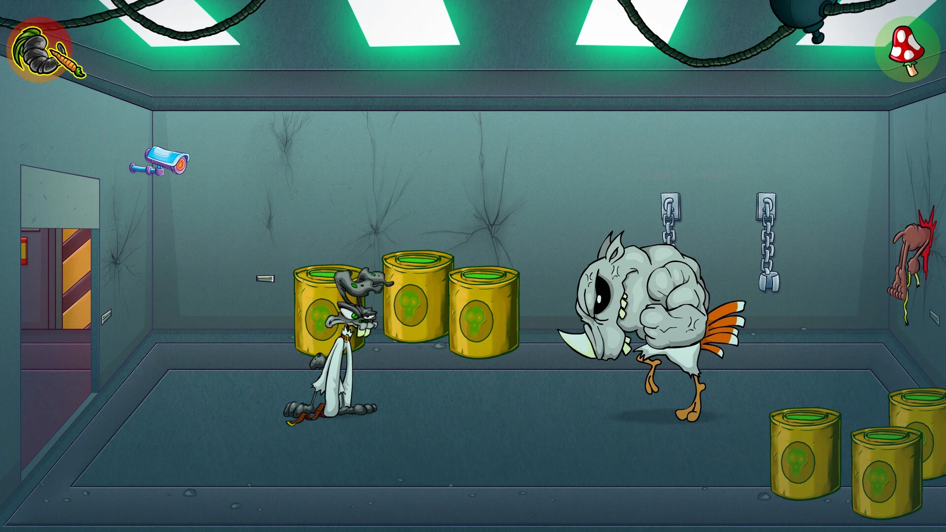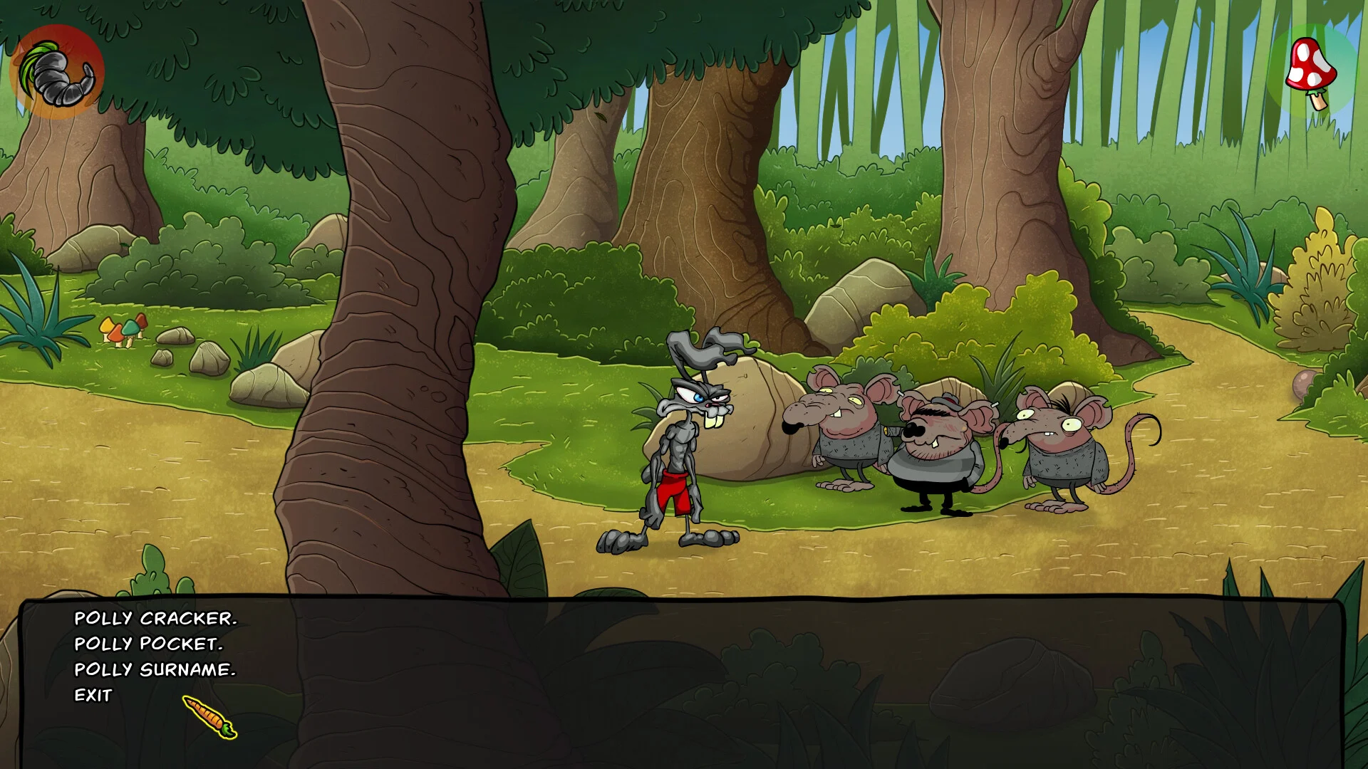 Mutants Ate My Carrots - это дикая point-and-click история про чёрного кролика с диким характером, изгнанца за пределами леса Deep Wood. Его фирменные морковные грядки исчезли в одночасье, и он отправляется на охоту за воришкой: вглядывается в каждый угол, применяет боевые приемы и не стесняется крошить всех, кто встанет поперёк - даже если придётся свалить поллесa. Но всё не так просто: за сказочным лесом прячется мерзкая тёмная тайна, а сюжет постоянно подбрасывает неожиданные повороты.