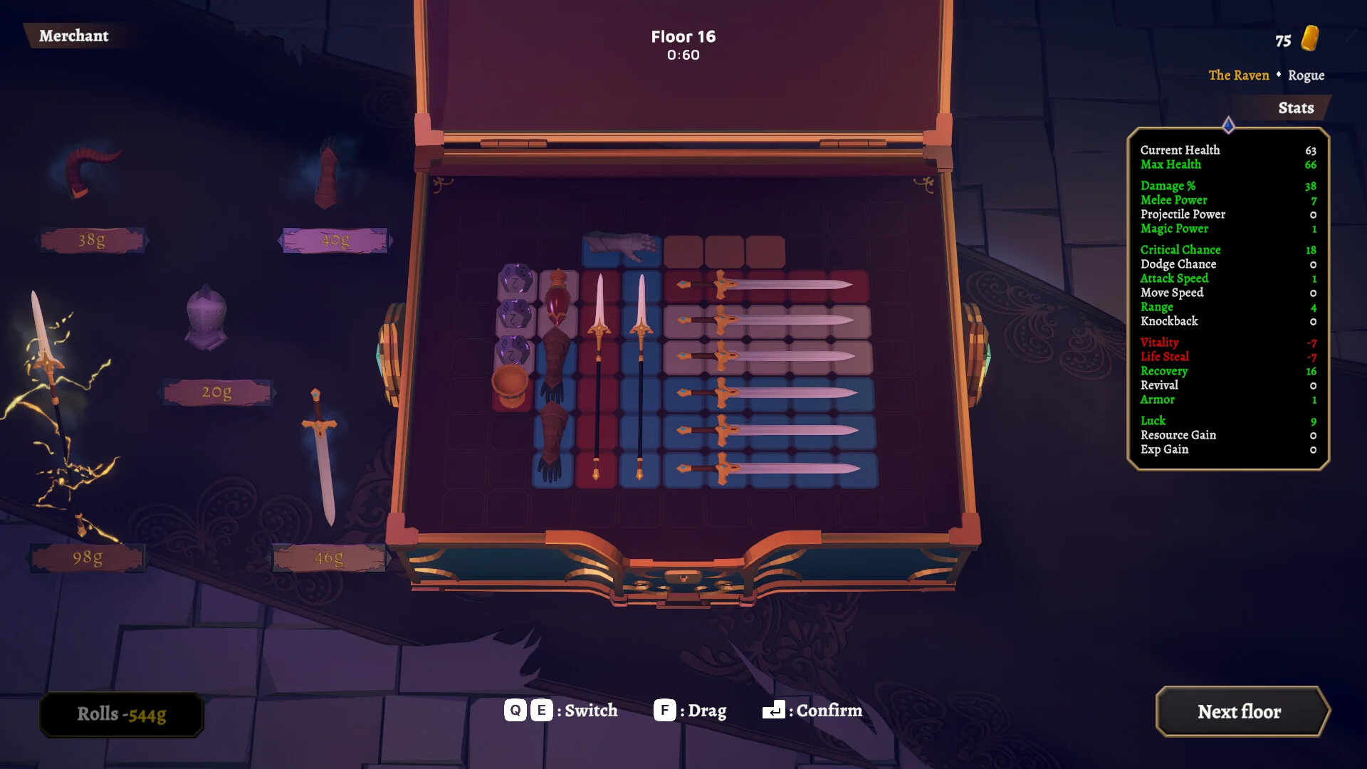 Собирайте добычу, новые орудия и аксессуары, чтобы усилить свои возможности в следующих раундах. Ваш инвентарь ограничен, поэтому каждое место важно: стратегически размещайте оружие и улучшения, взвешивайте преимущества и недостатки новых предметов и стройте комбинации, которые соответствуют вашему стилю боя.