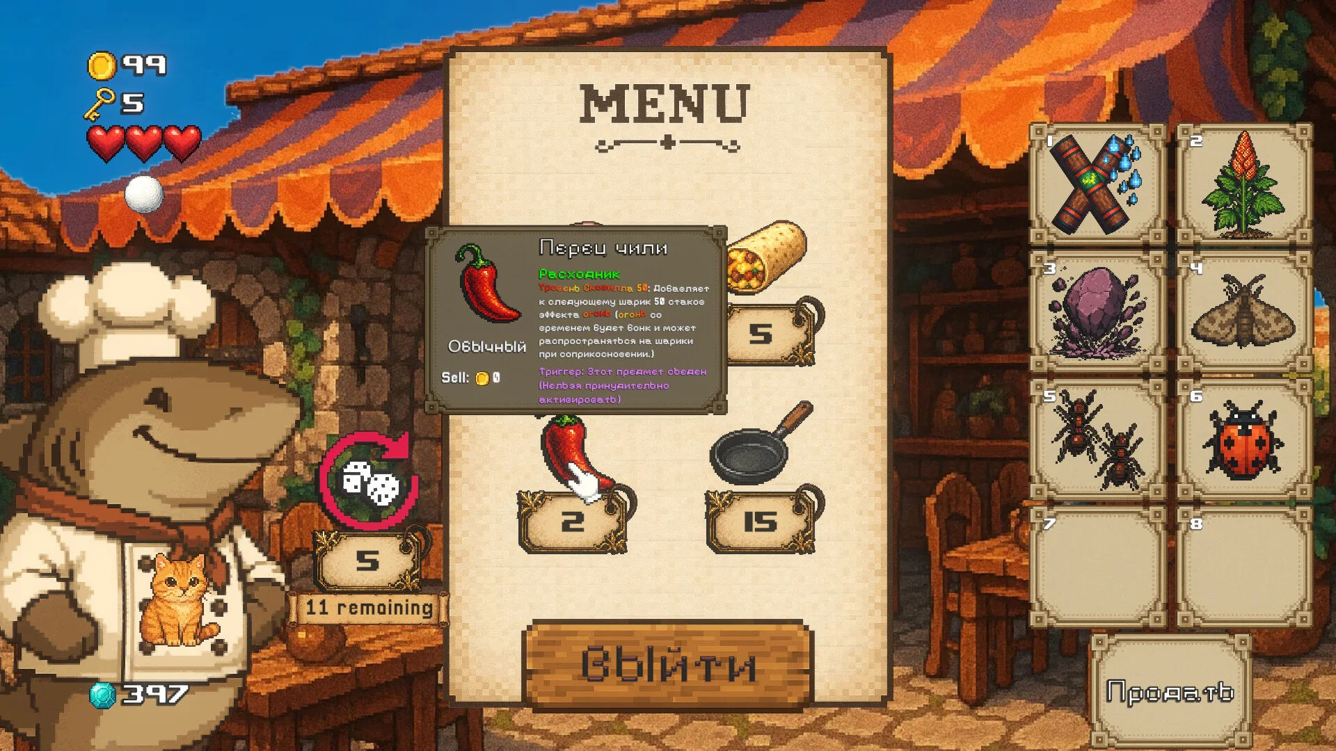 - Предметы, улучшенные оригами-динозавром, теперь при использовании Chaos Cabbage of Mystery стоят вдвое дороже базового уровня (5 → 10).