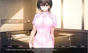 - Старшая медсестра Мияби - заботливая, материнская, с роскошной грудью и аппетитными формами. Она опекает тебя и одновременно хранит в глазах маленькую безуминку. Любит легкую садистскую игру и сама получает удовольствие от боли - настоящая масохистка. Её прикосновения одновременно утешают и терзают, а её ласки - почти религия.