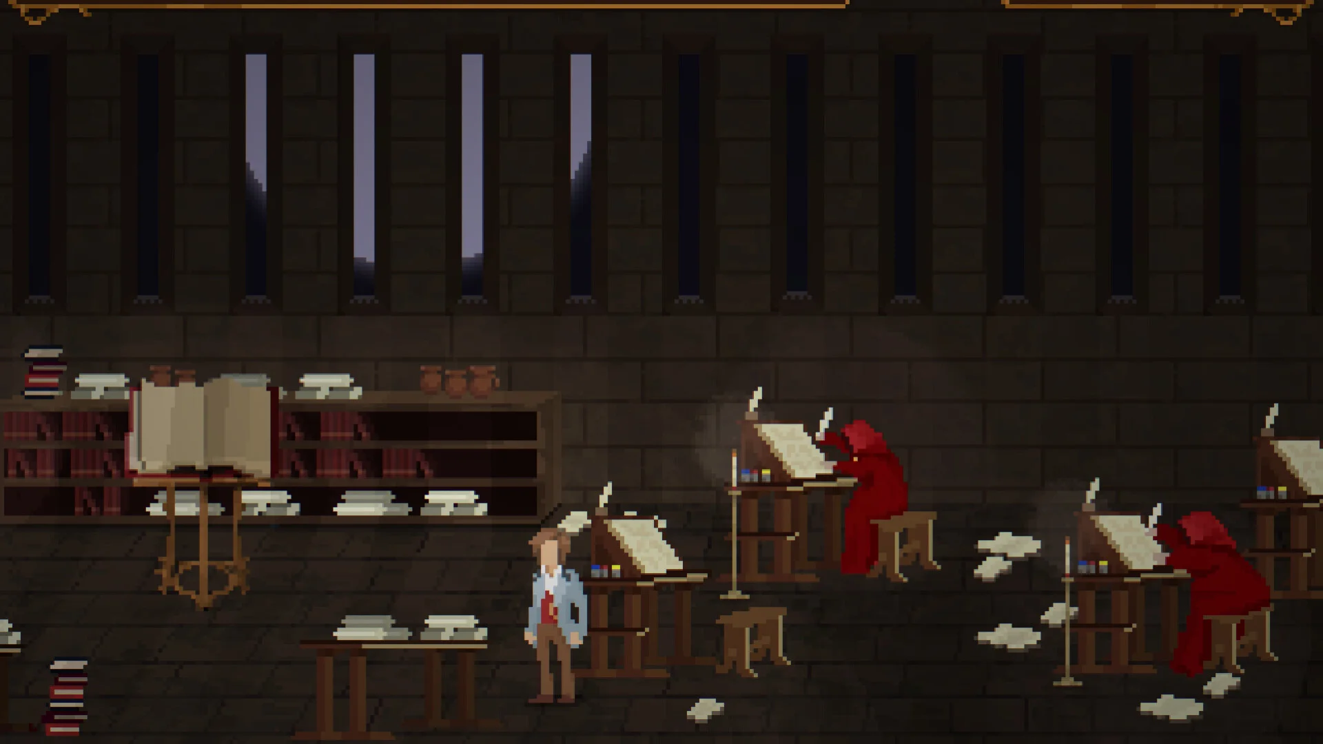 Scholar Adventure Mystery of Silence - это ретро point & click в духе 90-х с мрачным вайбом: ты - Уильям, начинающий писатель, что едет в отдалённое аббатство с обетом молчания, чтобы урвать вдохновение, но вместо этого спотыкаешься о тайну, которую не стоило бы лезть раскрывать. Смесь детализированной пиксель-арт картинки, чёрного юмора и атмосферных головоломок - чистый олдскул для любителей копаться в локациях и юзать найденные ништяки по делу.