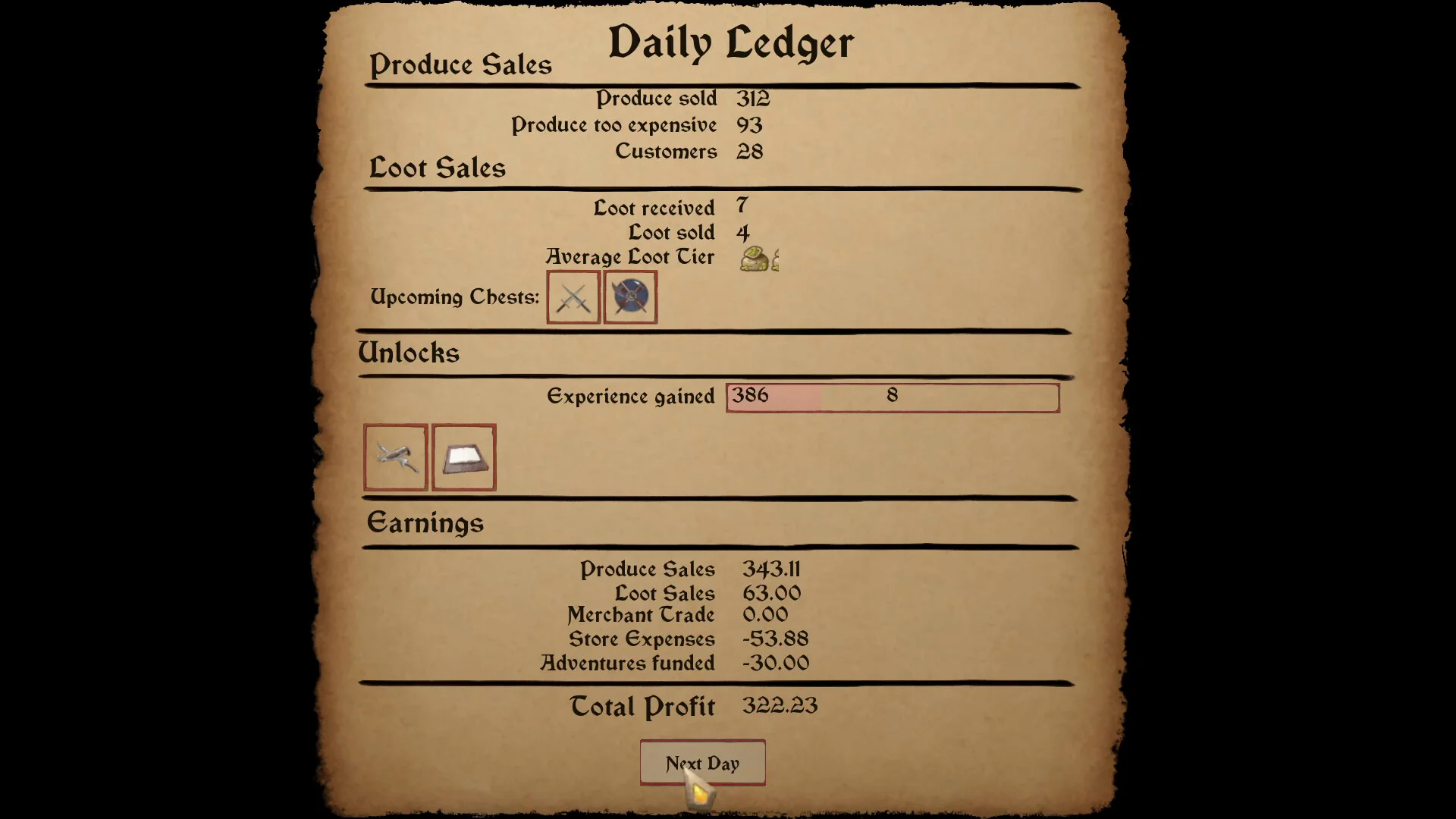 - Управление лавкой - покупайте и продавайте широкий ассортимент товаров: от еды до топоров и доспехов, следите за потоком клиентов и работой персонала.
