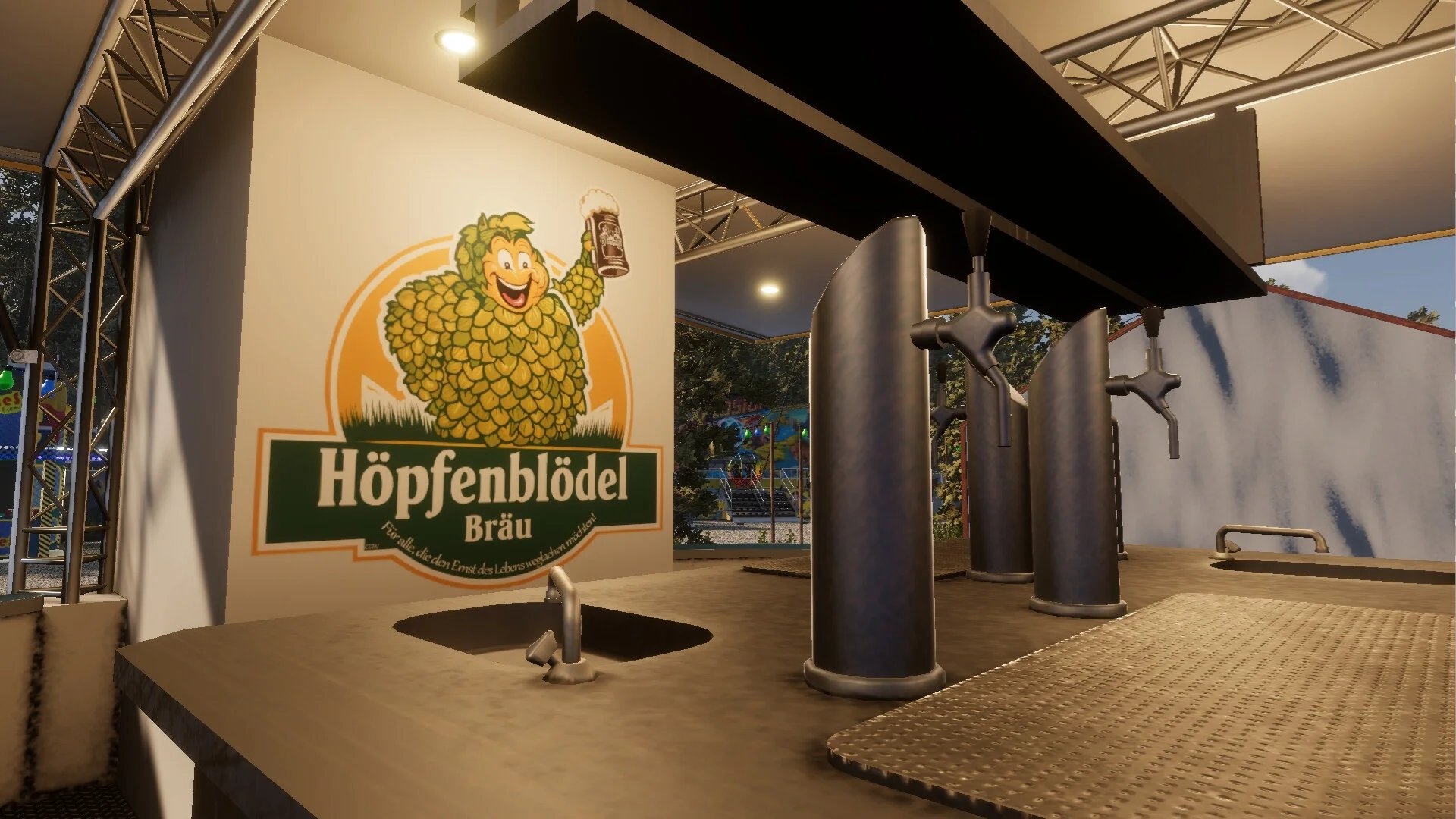- Цикл день-ночь: меняющаяся атмосфера парка в разное время суток добавляет реализма.