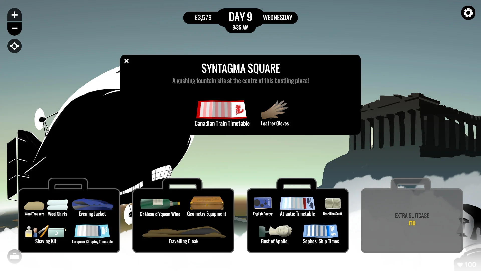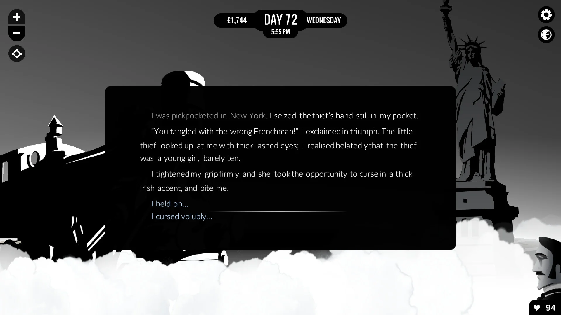 80 Days - это стимпанковское приключение в альтернативном 1872 году: Филеас Фогг поставил на карту кругосветное путешествие за восемьдесят дней, а вы - его верный камердинер Пасспарту - управляете временем, деньгами и здоровьем хозяина, прокладывая свой путь по миру.