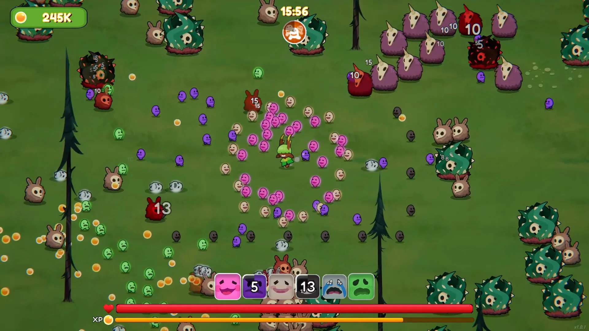 Chumini Tiny Army - это яркая игра в жанре survivors-like, где крошечные союзники творят массовое разрушение: вы призываете своих верных Чуминов, чтобы отражать орды лесных демонов, управлять уникальным поведением каждого союзника и выжить 20 минут, чтобы победить Темную друидессу.