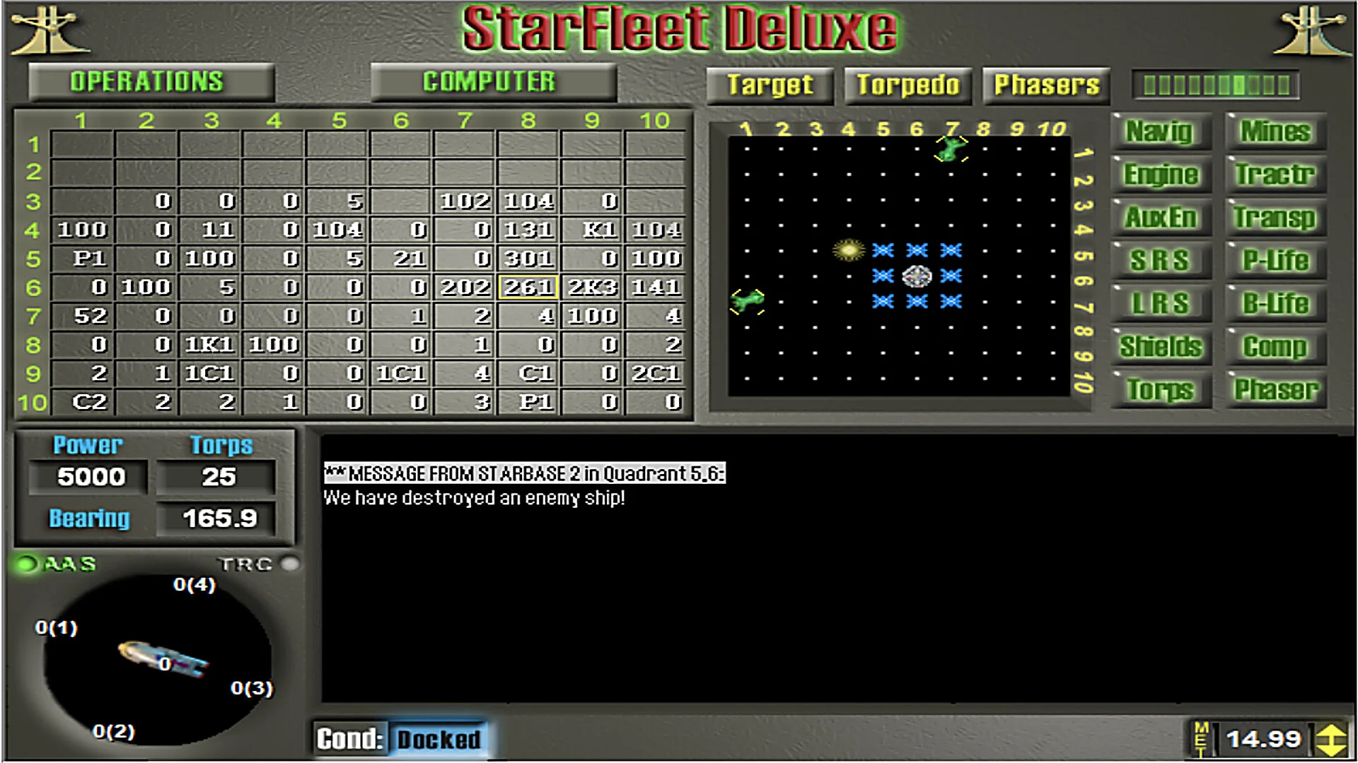 Star Fleet Deluxe - глубокий стратегический космический боевой симулятор. Вы - капитан тяжёлого крейсера класса Invincible, последней линии обороны United Galactic Alliance против беспощадной империи Krellan и их союзников Zaldron. Патрулируйте сектор 10×10 (100 квадрантов), планируйте тактические прыжки, управляйте 14 критическими системами корабля, докуйтесь на звёздных базах и используйте орбитальные мины и подкрепления колоний. Реальное время с режимом паузы, интенсивные бои с фазерами и торпедами (25 стандартных торпед, перегруз до 35, 5 залпов), тракторный луч, 6 фазеров и команда из 500 человек, включая 70 элитных морских десантников. Beta‑версия (обозначенная как 1.0) полностью играбельна - возьмите штурвал и решите судьбу галактических секторов.