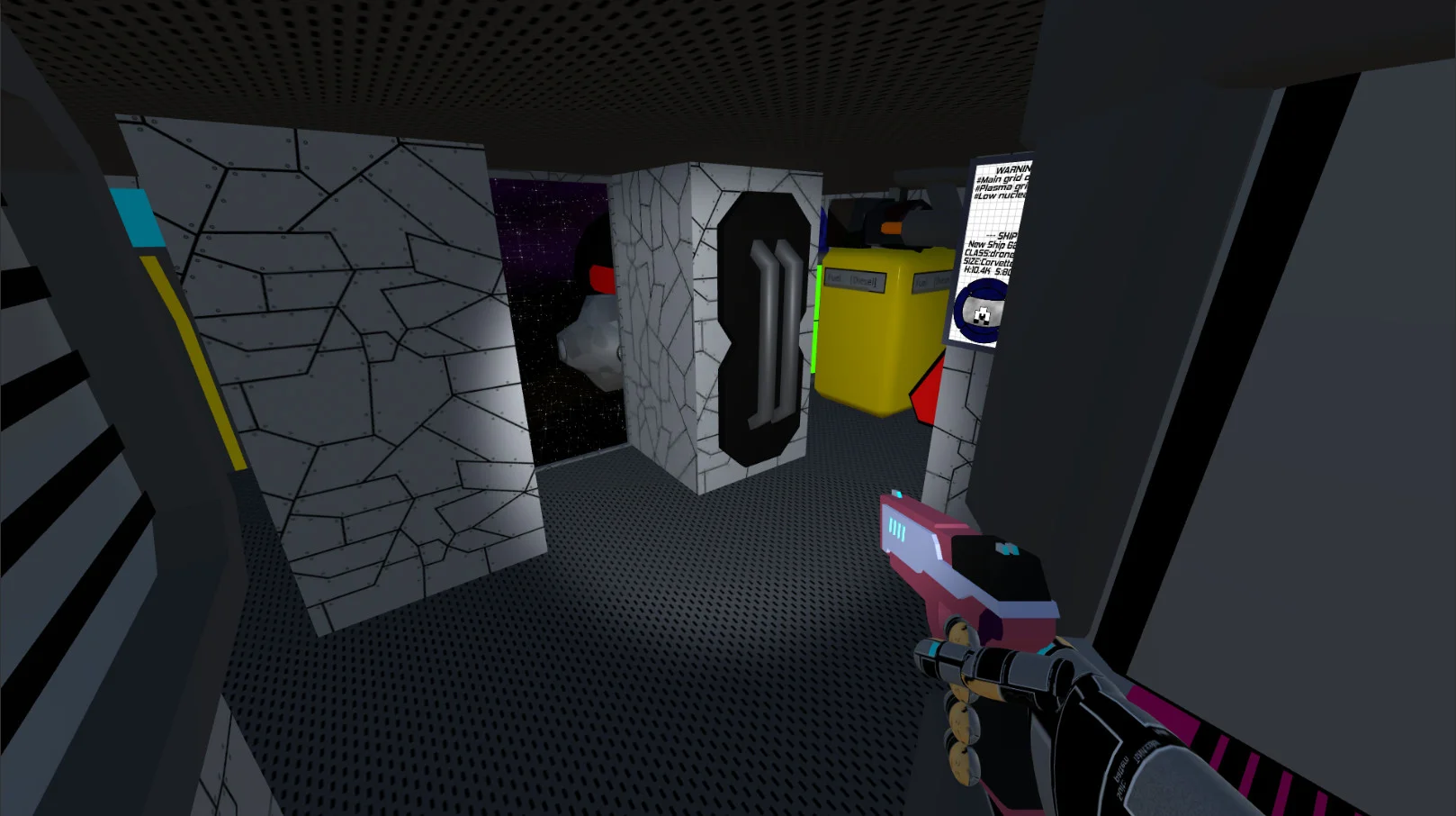 Косой корпус, настраиваемые текстуры/плитки/оттенки и сплошной корпус (больше никаких щелей от вмятин). Толстые стены и пол с кромочными стойками, чтобы внутреннее пространство корпуса смотрелось объёмнее. Вражеские базы теперь выглядят действительно зловеще, а ваш корабль внутри стал намного более "сай-фай", по крайней мере по сравнению со старыми текстурами.