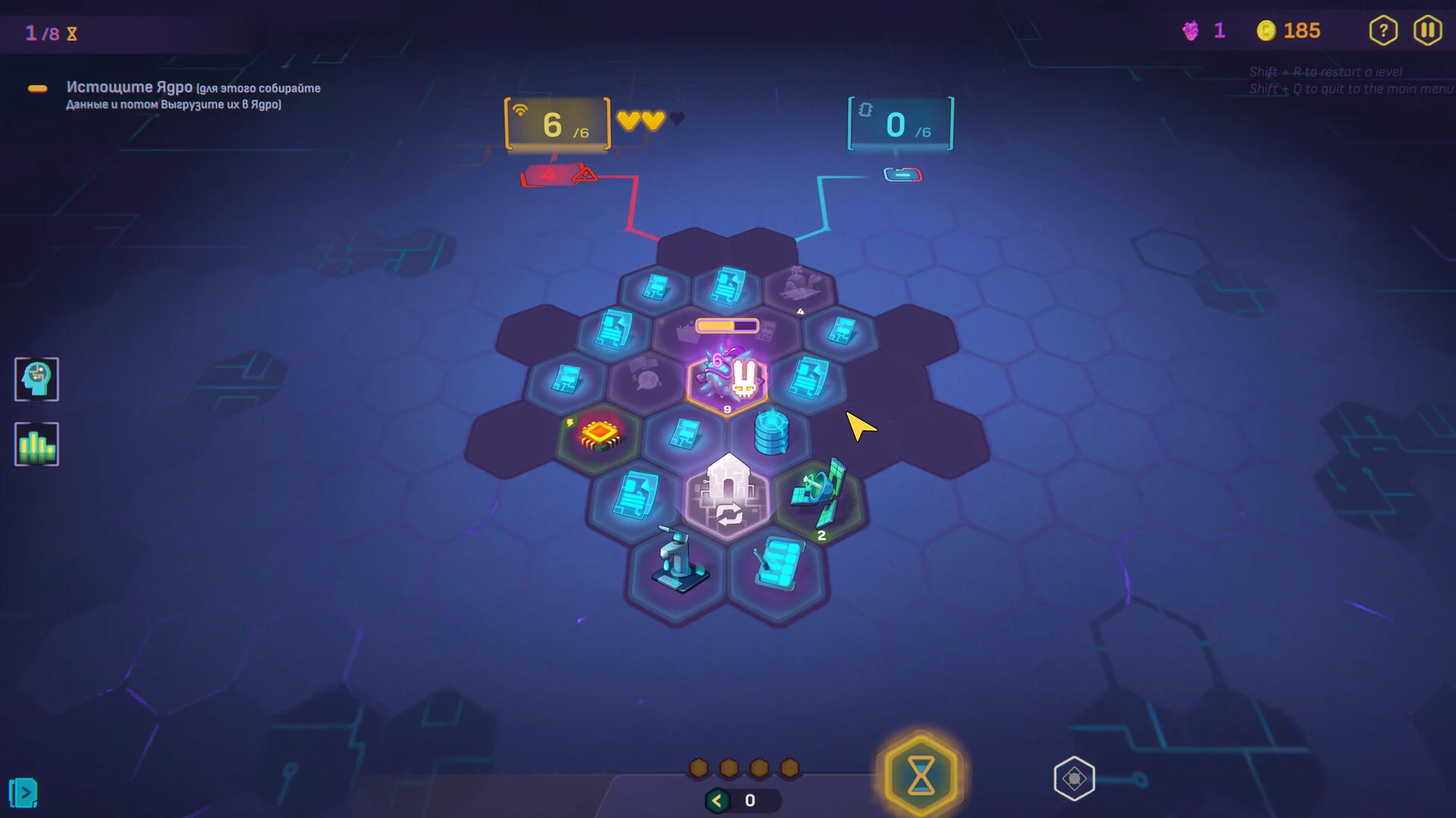 NET.CRAWL - колодостроительный рогалик, где карты заменены гексами: шаг по гексу активирует его эффект. Синие гексы приносят Данные, жёлтые - кредиты, зелёные - набор полезных инструментов от защиты до изменений правил, красные - враждебные ловушки, а фиолетовые - Ядра: мини‑боссы с уникальными способностями или условиями победы. Уровни смешивают гексы разных цветов, создавая тысячи комбинаций - и вы сами выбираете, какие гексы взять. Сможете ли вы собрать идеальную "колоду" из гексов и победить коварные Ядра? Готовы рискнуть и погрузиться в сеть?