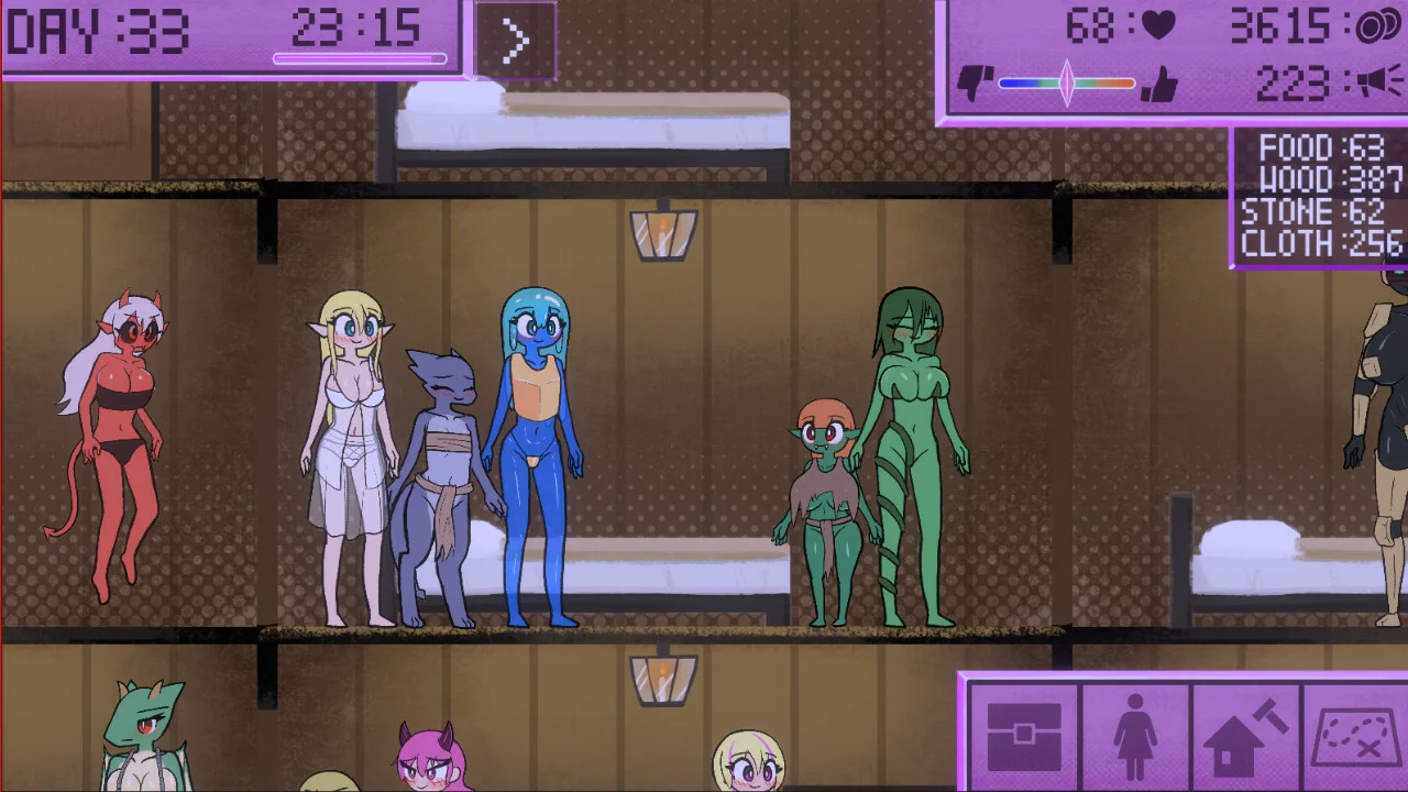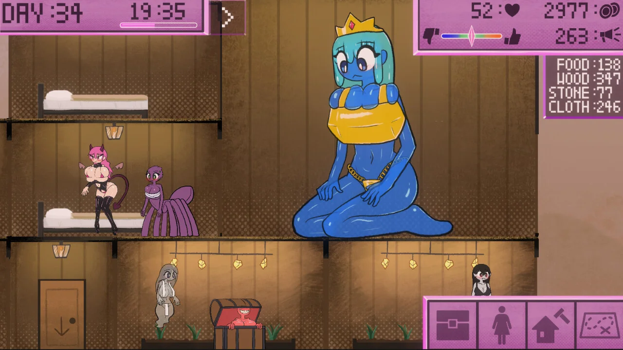 В игре представлено более 20 видов девушек-монстров, у каждой из которых есть свои особенности и анимации. Вы сможете заниматься строительством и улучшением заведения, открывать новые возможности для роста и поддерживать развитие бизнеса. Также предусмотрены анимированные сцены для персонажей, связанных с прогрессом, и галерея, где можно пересматривать понравившиеся анимации.