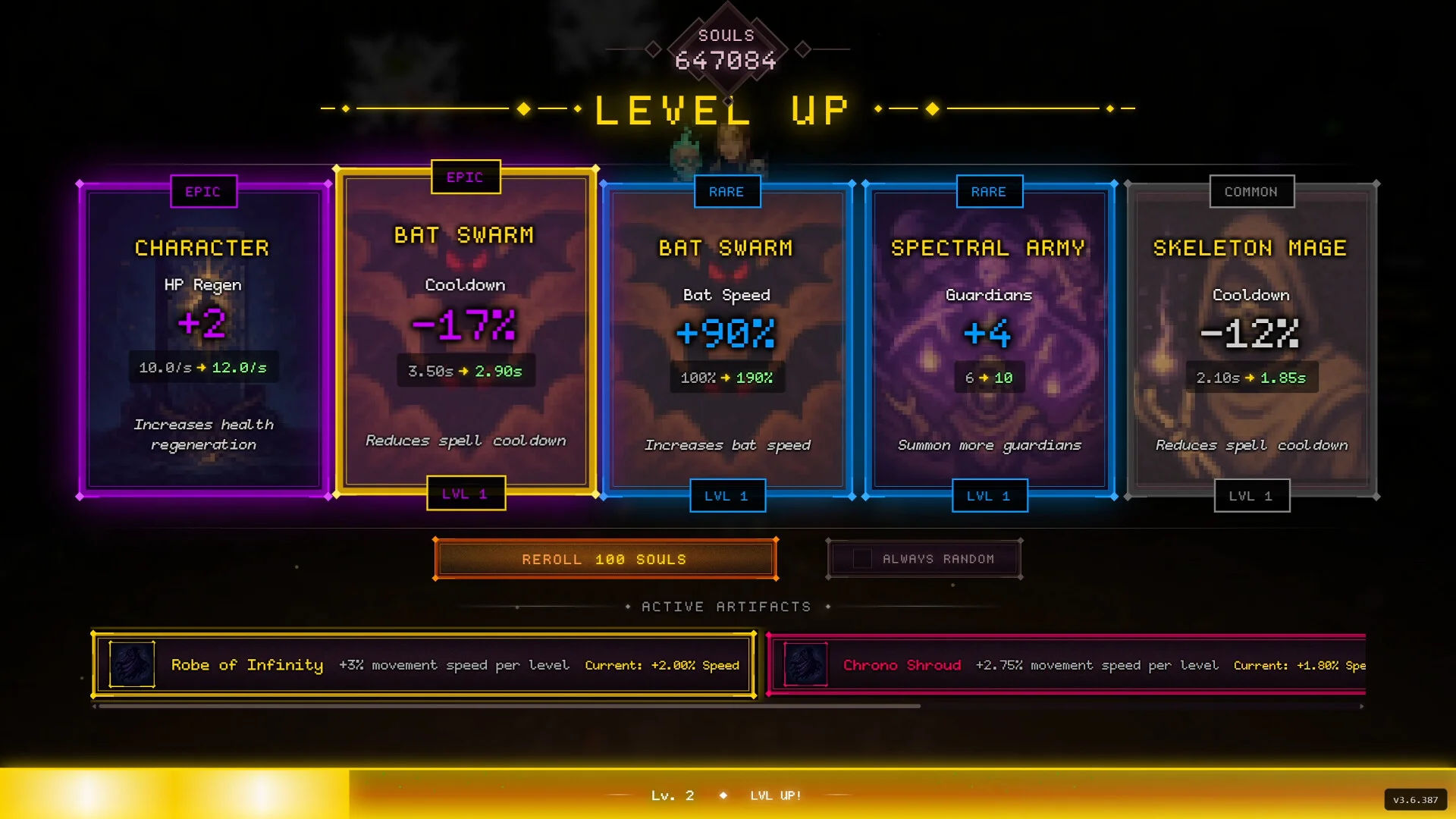 Новая опция авто-отказа: включите её на экране выбора свитка, и все последующие свитки в забеге будут автоматически отклоняться, а награда в душах будет выдаваться сразу, без лишних окон и пауз.